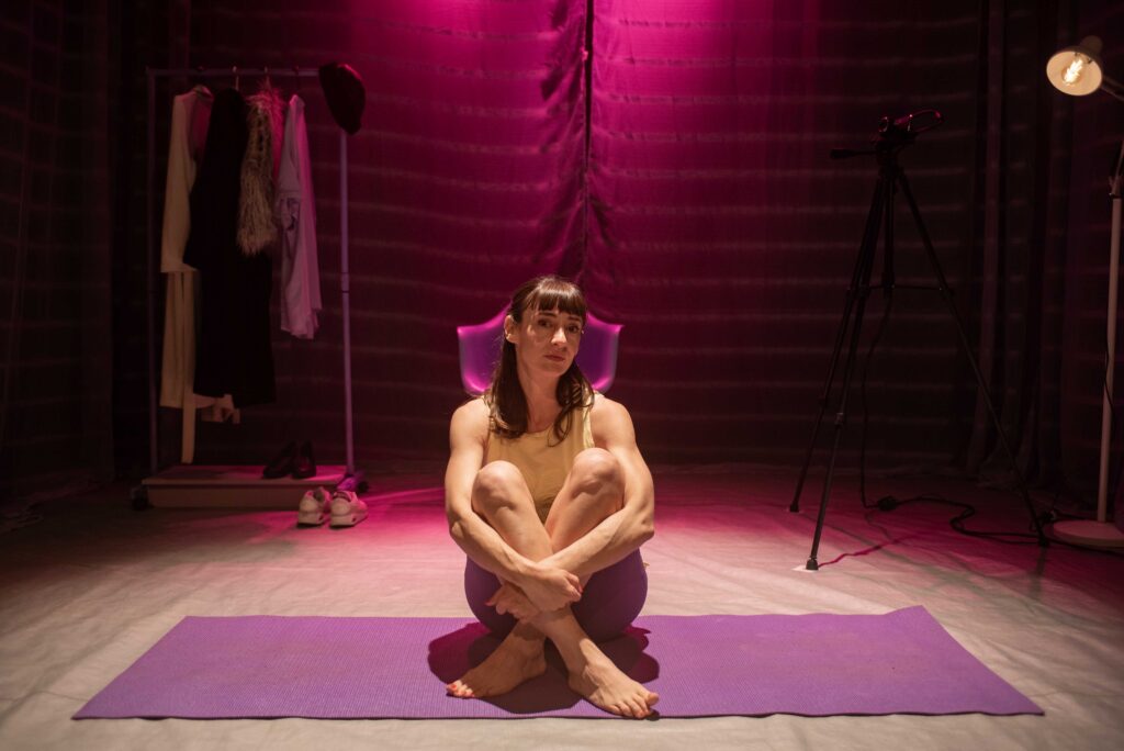 En “Harta”, una actriz se planta sola frente al público en un espacio casi desnudo, como si el escenario fuera una habitación mental en permanente reacomodo. Con pocos objetos y mucha verdad, va desarmando y reconstruyendo su propia biografía escénica: rutinas que se deshilachan, miedos que aparecen sin pedir permiso, intentos obstinados por mantenerse a flote en medio del vértigo emocional.
