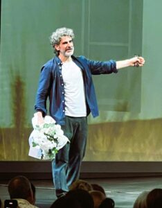 El centro absoluto del acontecimiento es Leonardo Sbaraglia. Su actuación no se limita a “interpretar”: sostiene la obra con una presencia magnética, capaz de atravesar incluso los ruidos de la sala. En los momentos en que algunos espectadores “olvidan” apagar sus celulares, lejos de quebrarse, su energía se tensa y continúa, como si esa interrupción formara parte de la intemperie que habita el personaje.